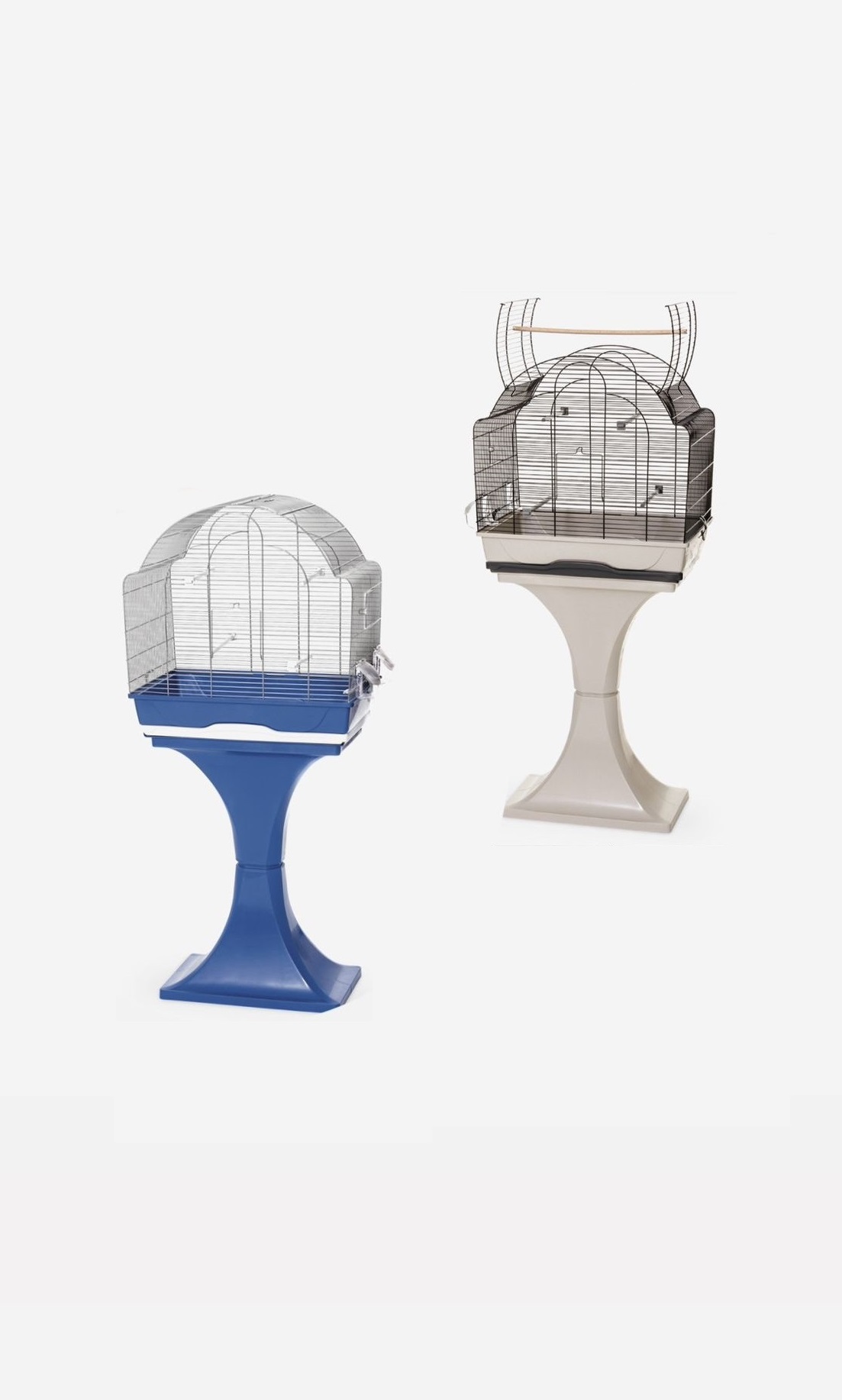 Gabbia DAISY per uccelli con piedistallo, funzionale e pratica adatta a canarini, esotici ed altri volatili, la gabbia può essere rimossa dal supporto utilizzando i due ganci in dotazione. Dotata di manico in cima alla gabbia.